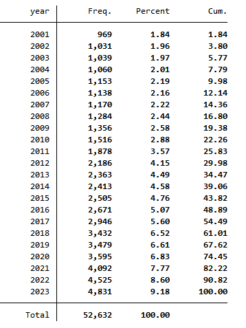 ▪ 数据说明:中国上市公司盈余管理指标(基于修正Jones模型)统计了基于修正的Jones模型计算出的上市公司盈余管理指标。包含证券代码、统计年份、证券简称、营业收入变动额(元)、应收账款变动额(元)、总应计利润(元)、非操控性应计利润(元)、操控性应计利润(元)、修正的Jones模型截距、系数0、系数1、系数2、残差等指标等变量。数据提供.dta和.xlxs两种格式。
