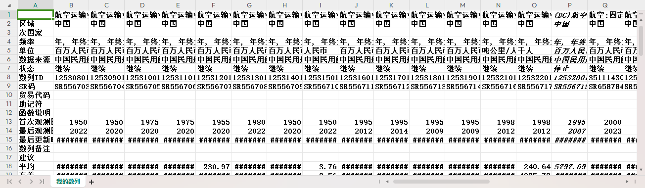 航空运输业:业务收入 航空运输业:业务收入:运输收入 航空运输业:业务收入:运输收入:国内航线 航空运输业:业务收入:运输收入:国际及地区航线 航空运输业:业务收入:通用航空收入 航空运输业:业务收入:机场服务收入 航空运输业:业务收入:其他收入 航空运输业:业务收入:每运输吨公里收入 航空运输业:营业成本 航空运输业:主营业务利润 航空运输业:固定资产原值 航空运输业:固定资产净值 航空运输业:劳动生产率 航空运输业:职工人数 (DC)航空运输业:工资总额 航空:固定资产投资:基本建设 航空:固定资产投资:飞机购置 (DC)航空:固定资产投资:基本建设 (DC)航空:固定资产投资:基本建设:新建 (DC)航空:固定资产投资:基本建设:扩建 (DC)航空:固定资产投资:基本建设:改建 (DC)航空:固定资产投资:更新改造 (DC)航空:固定资产投资:更新改造:新建 (DC)航空:固定资产投资:更新改造:扩建 (DC)航空:固定资产投资:更新改造:改建 (DC)航空:固定资产投资:资金来源:基本建设 (DC)航空:固定资产投资:资金来源:基本建设:预算内拨款 (DC)航空:固定资产投资:资金来源:基本建设:国债 (DC)航空:固定资产投资:资金来源:基本建设:银行贷款 (DC)航空:固定资产投资:资金来源:基本建设:民航建设基金 (DC)航空:固定资产投资:资金来源:基本建设:机场建设费 (DC)航空:固定资产投资:资金来源:基本建设:利用外资 (DC)航空:固定资产投资:资金来源:基本建设:自筹资金 (DC)航空:固定资产投资:资金来源:基本建设:其他资金 (DC)航空:固定资产投资:资金来源:更新改造 (DC)航空:固定资产投资:资金来源:更新改造:民航建设基金 (DC)航空:固定资产投资:资金来源:更新改造:机场建设费 (DC)航空:固定资产投资:资金来源:更新改造:自筹资金 (DC)航空:固定资产投资:资金来源:更新改造:其他资金