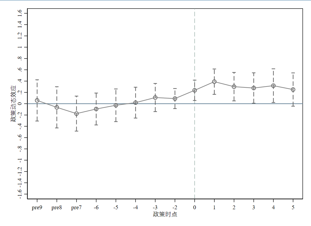 这样的平行趋势图算通过了吗?最后一期和横轴相交可以怎么“狡辩”呢