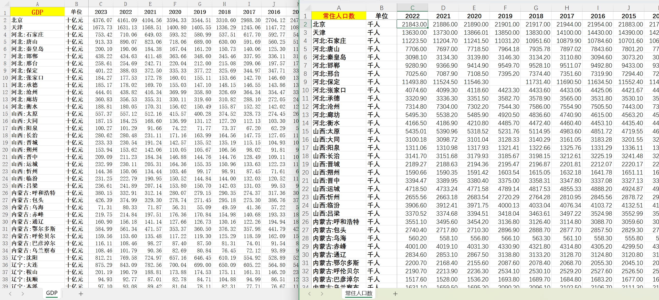 2002-2023年 地级市 各市 市级 GDP 第三产业增加值 占比 人均GDP 常住人口数 户籍人口数