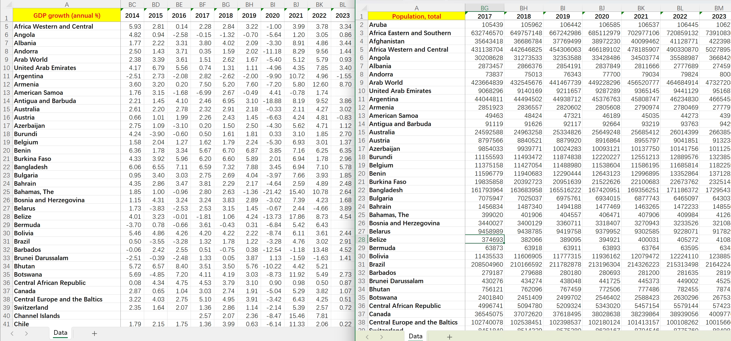 1961-2023年 全球 260多个国家 GDP 人均GDP GDP增长率 CPI 通胀率 总人口 劳动力人口 失业率 城镇化率 城市化率