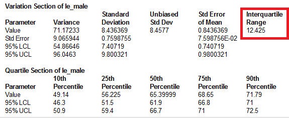stata统计的四分位数间距(iqr)为何与spss或NCSS的结果不一致,使用系统文件(sysuse uslifeexp)结果iqr=12.15,