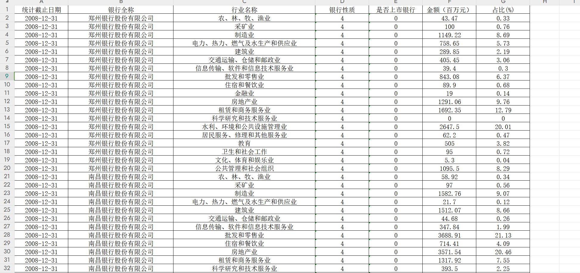 银行贷款投向(地区投向)数据2008-2022 银行数量:470多个 数据量:8k+ 说明:部分 数据为空,没有查到数据或数据不存在 内容指标: