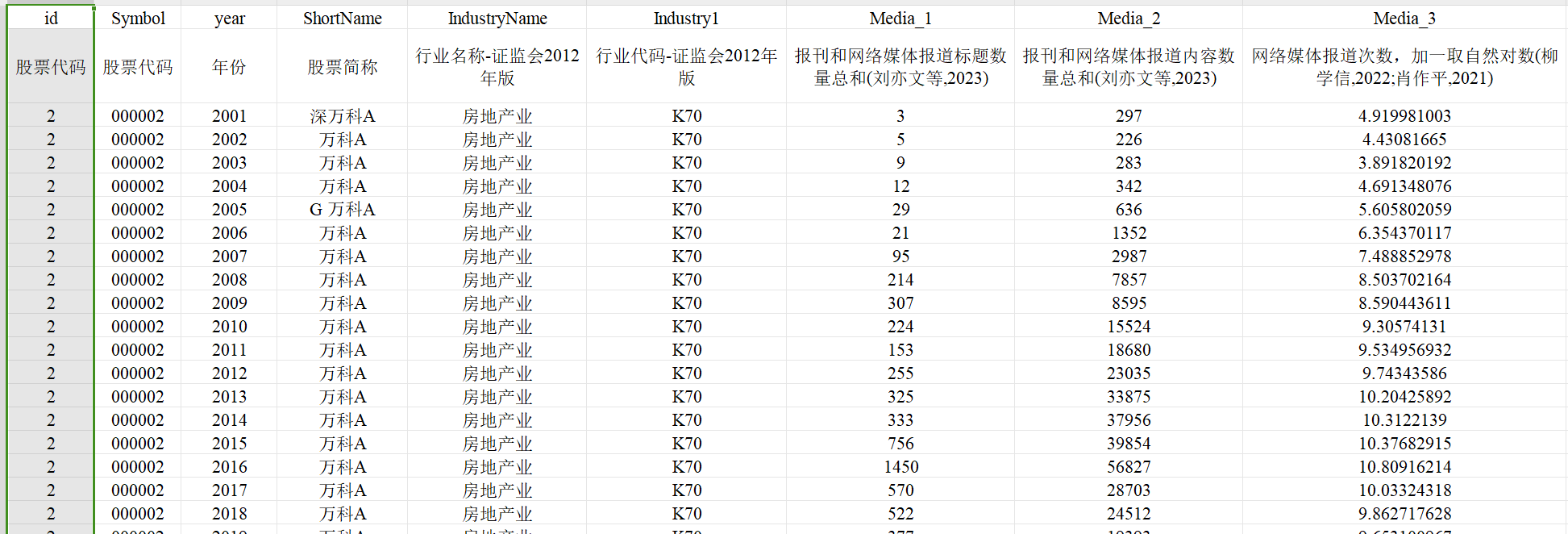 2022-2000年上市公司企业媒体关注数据: