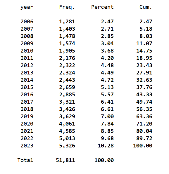 上市公司企业经营环境指数数据包含数据年:2006、2008、2012、2016、2019、2022缺失年份数据使用线性插值方法进行补充