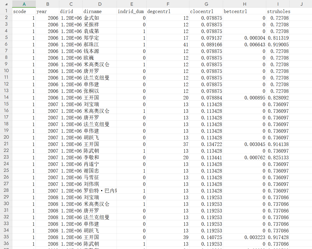 2022—2006年上市公司企业董事网络关系、中心度结构洞数据