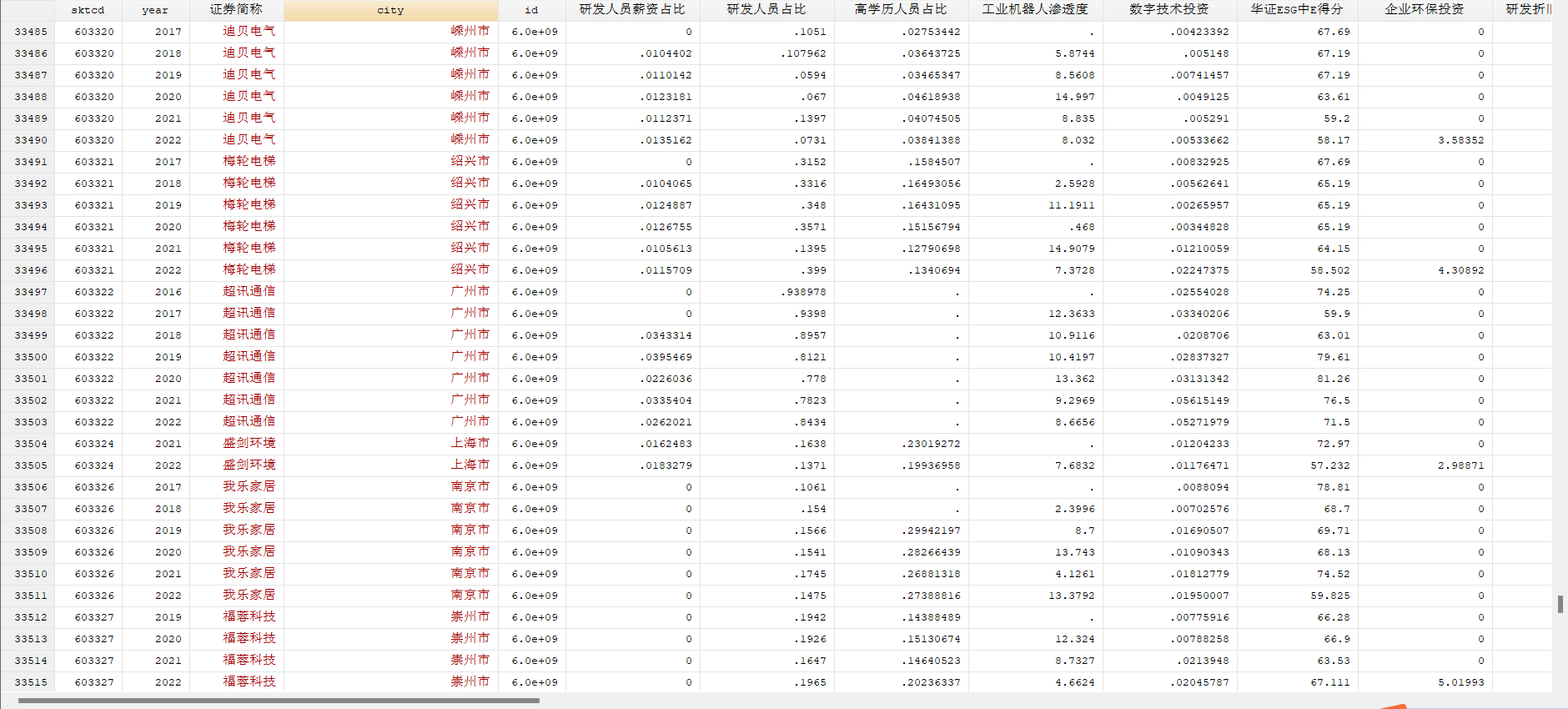 华证ESG中E得分_sum