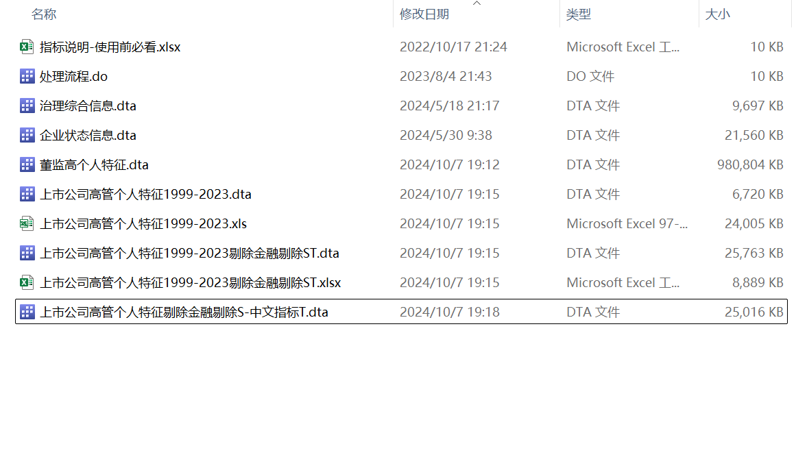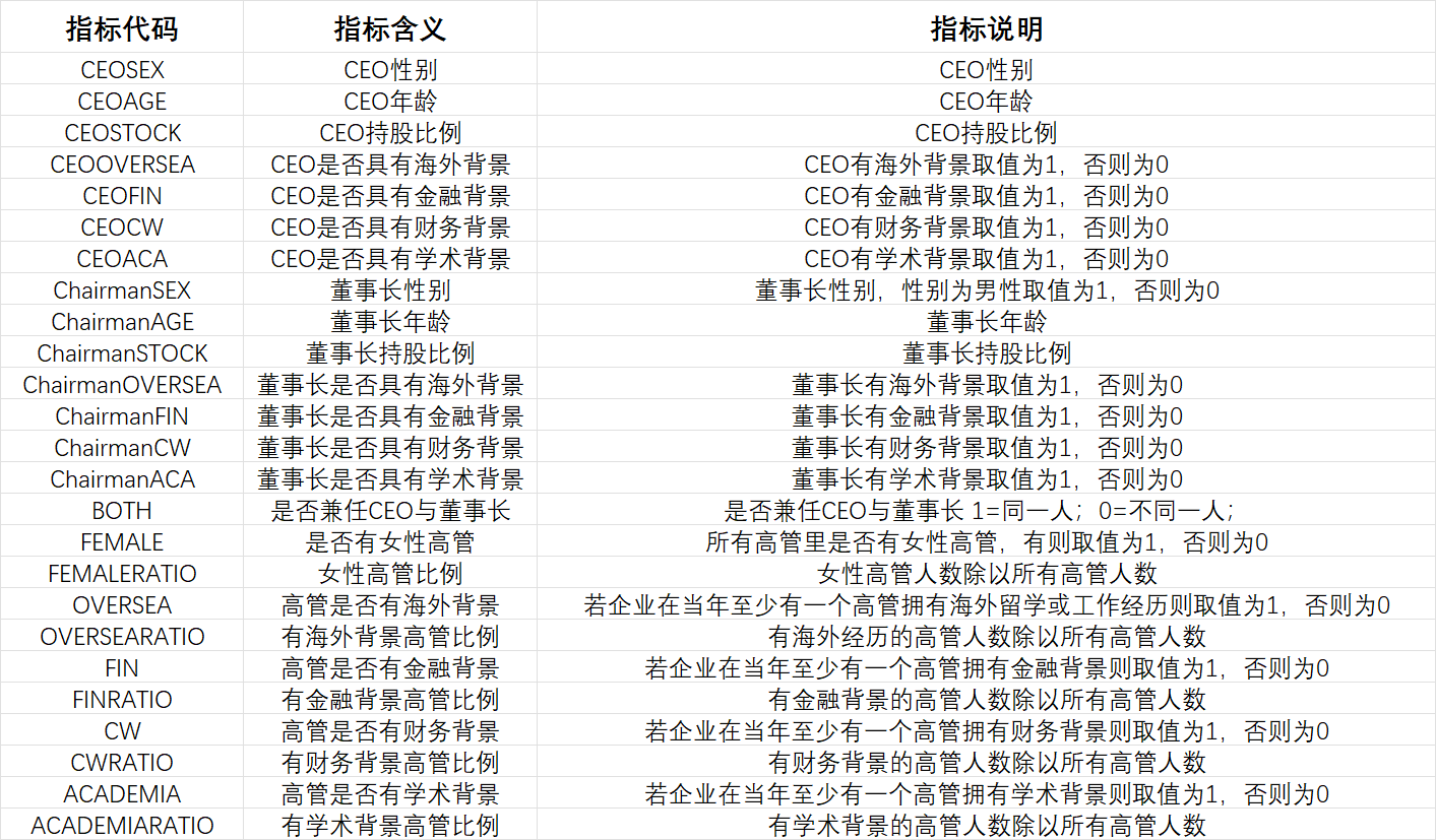 给大家整理了实证中常用的高管背景特征数据,相关变量数据直接看下图即可,每一个变量都有具体的do文档: