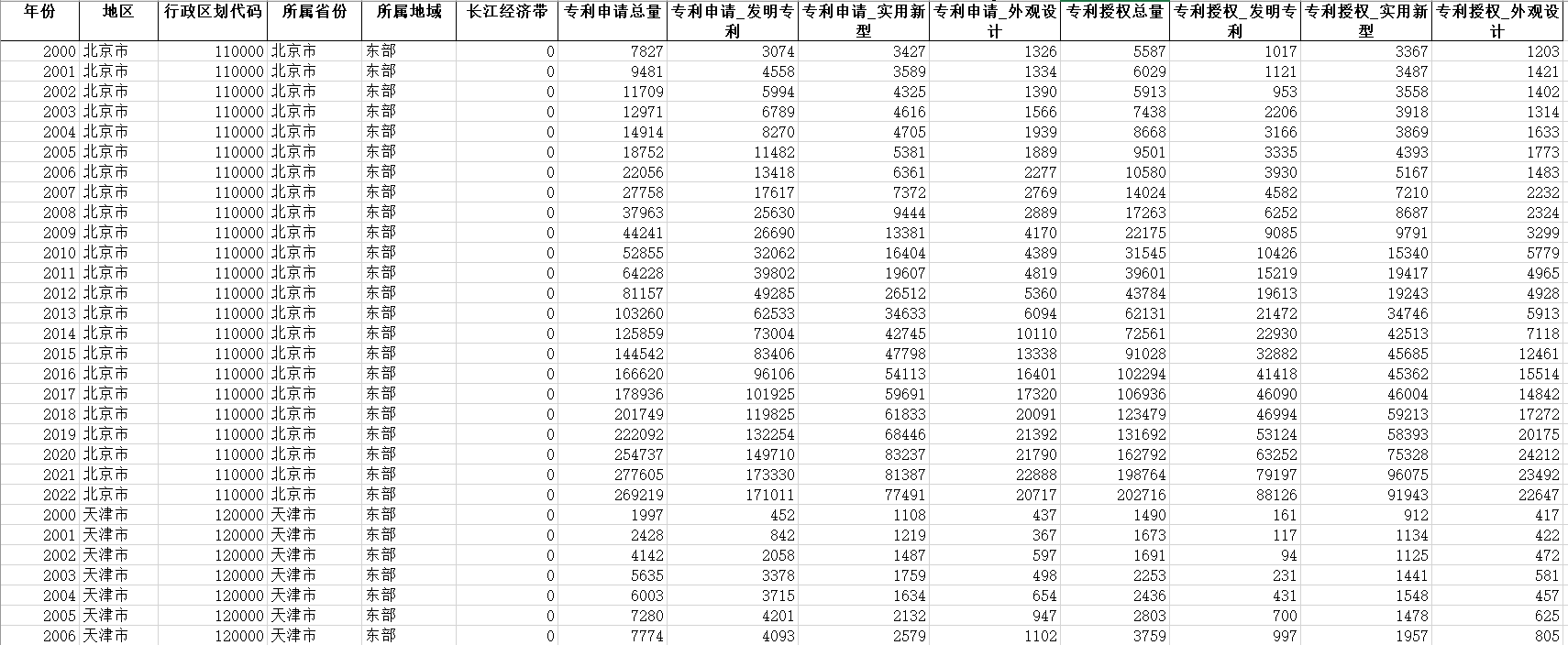 2000-2022全国地级市专利数量面板数据
