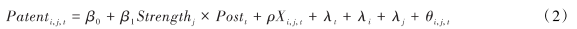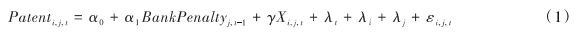 其中,i表示企业个体,j表示城市,表示年份;被解释变量Patent为企业创新水平;核心解释变量BankPenalv为城市层面的银行监管处罚:X是控制变量,包括企业性质、规模、成长能力、盈利能力、营业成本、周定资产占比、账面市值比、董事会规模、具有法律背景高管占比、监管层持股、企业专利存量、人均GDP、传统金融发展、市场化指数、行业竞争度和行业竞争度的平方。模型中加入了时间固定效应(入,)、企业固定效应(A,)以及城市固定效应(λ)。8表示随机误差项。