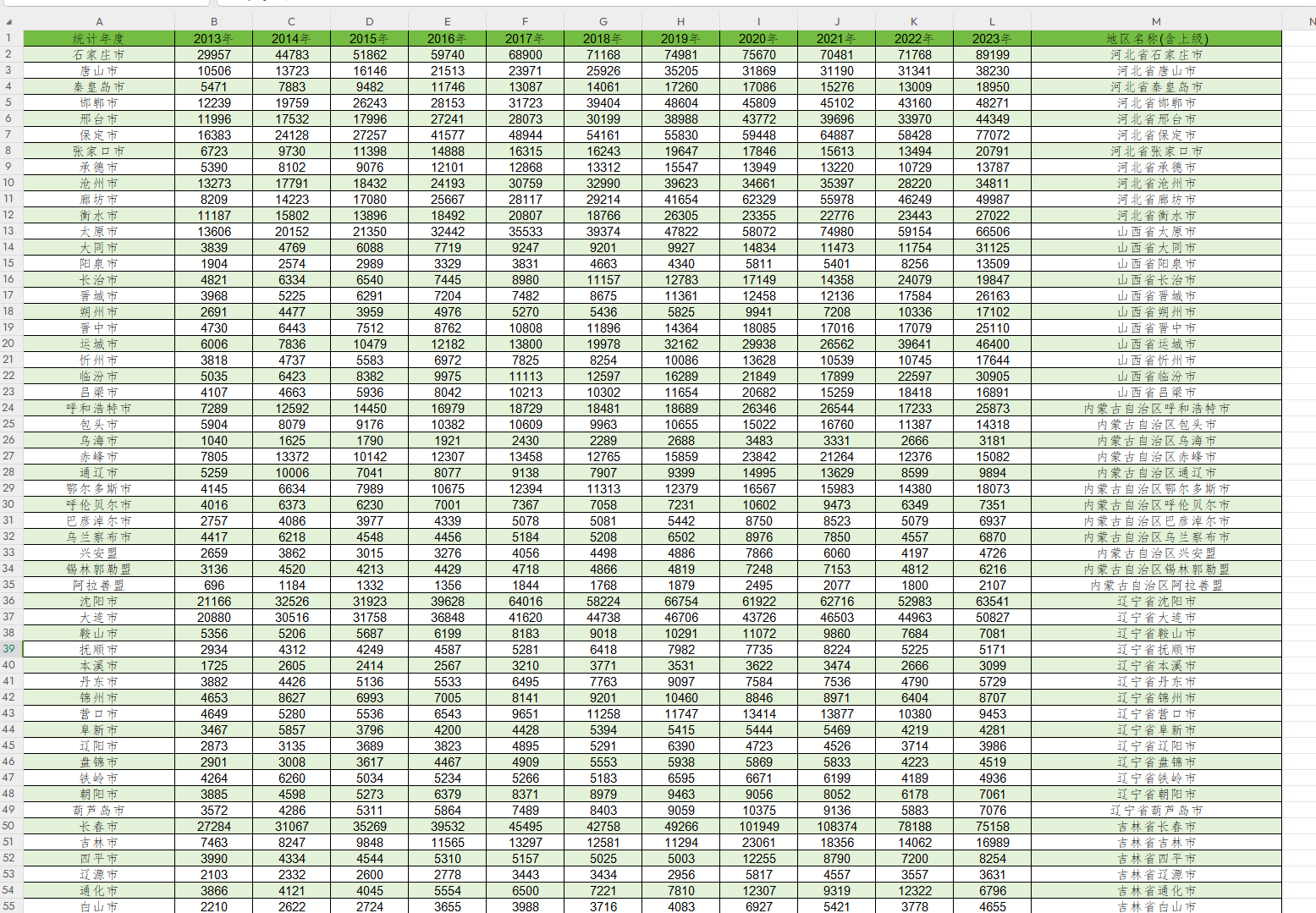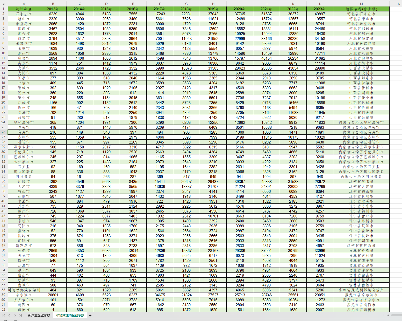 中国各城市新成立与注销公司数量统计数据2013-2023.xlsx