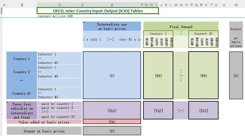 [color=rgba(0, 0, 0, 0.9)]最新版的经合组织国家间投入产出(ICIO)根据ISIC 修订版4列出了45个独特的行业。这些表格提供了1995年至2020年间76个国家(以及世界其他地区)的数据。