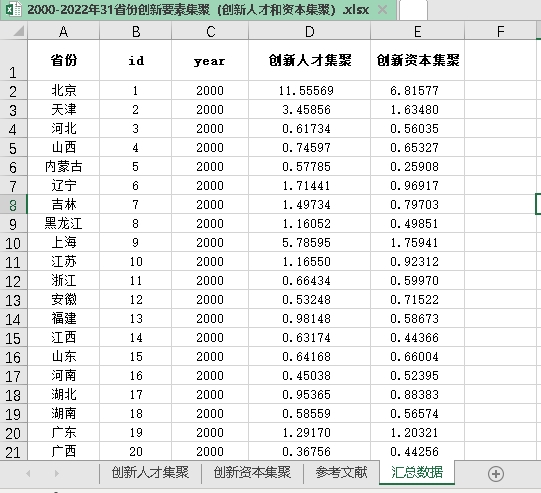2000-2022年31省份创新要素集聚(创新人才和资本集聚).xlsx