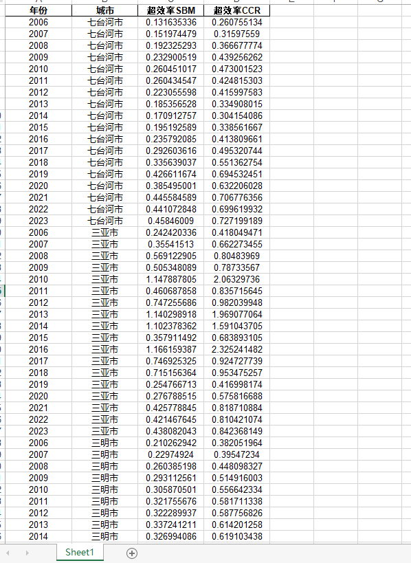 定义:超效率CCR模型是另一种基于数据包络分析的评估方法,与超效率SBM模型类似,但可能在具体的计算方法和假设条件上有所不同。