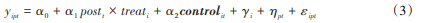 (二)模型设定 本文的回归模型设定如式(3)所示: