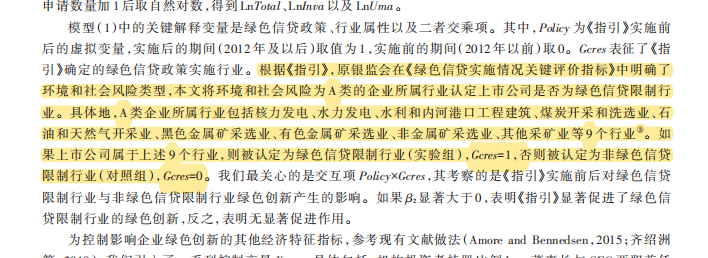 1、数据源名称:A股上市公司《绿色信贷指引》DID