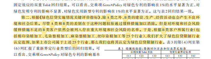 DID指标:Gcres*Policy,绿色信贷限制行业的企业在2012年之后赋值为1,否则为0