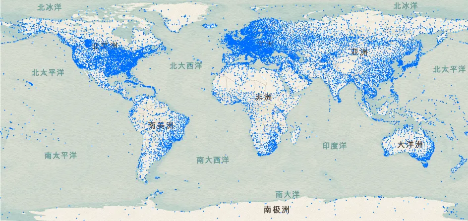 将Excel数据进行可视化表达,将其转换成Shp格式文件,下图为可视化示例: