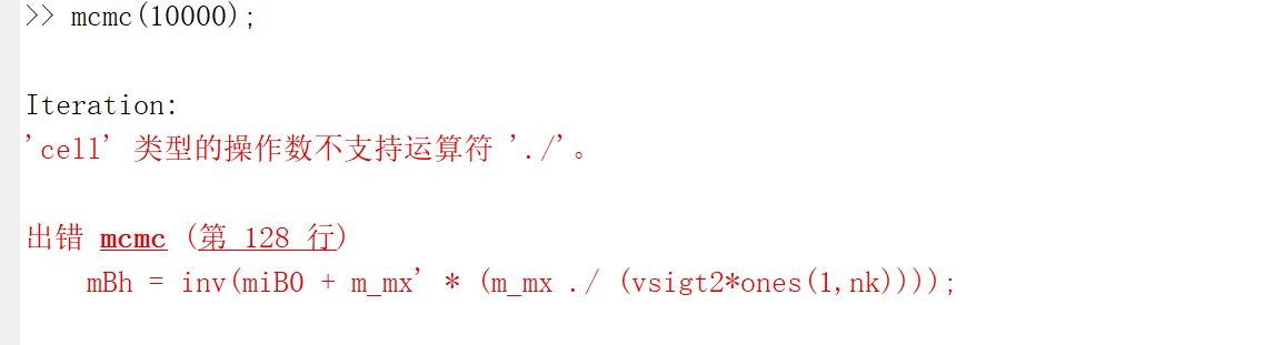在进行mcmc的运行中,代码报错,请问这该怎么解决呀。