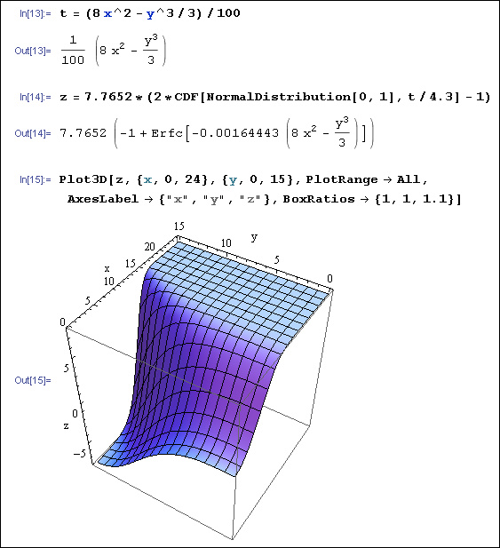 Φ(t)是标准正态分布求概率的函数,例如 Φ(3)=0.9987,我查了下,是NORMCDF函数,现在主要是需要画一个三维的立体图,纵坐标为z,两个横坐标为x和y;我用Matlab画了下,但是几个限制条件总是不知道怎么弄。希望您能指点指点,感激不尽!