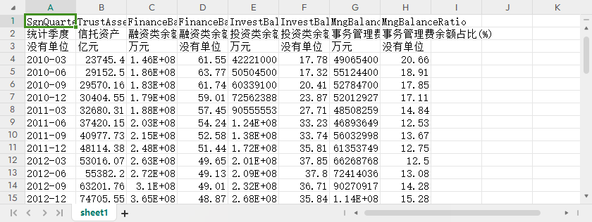 统计季度 信托资产 融资类余额 融资类余额占比(%) 投资类余额 投资类余额占比(%) 事务管理费余额 事务管理费余额占比(%)