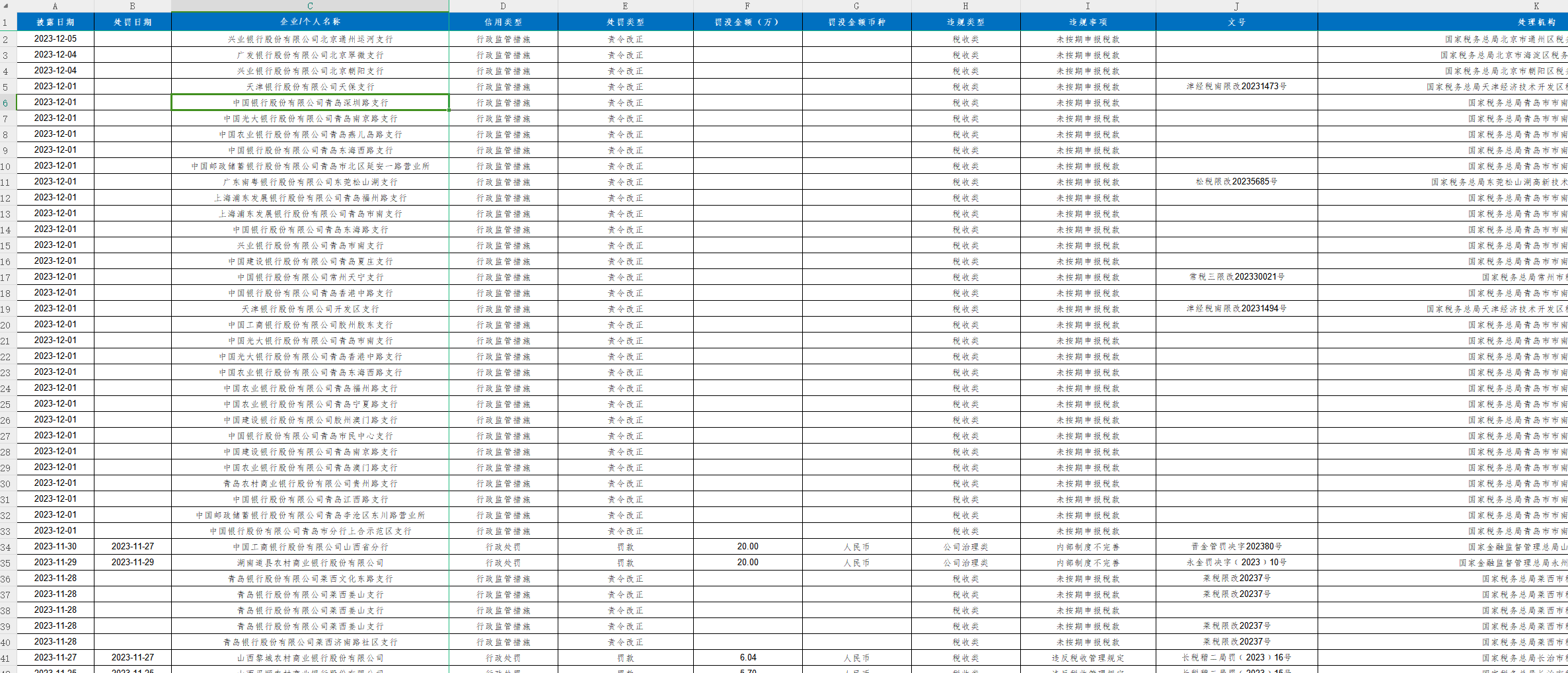 银行机构公司信用违规处罚数据2000-2023.xlsx