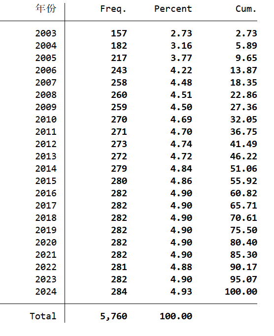 词表),后续使用Stata 进行整理,最终形成面板数据形式