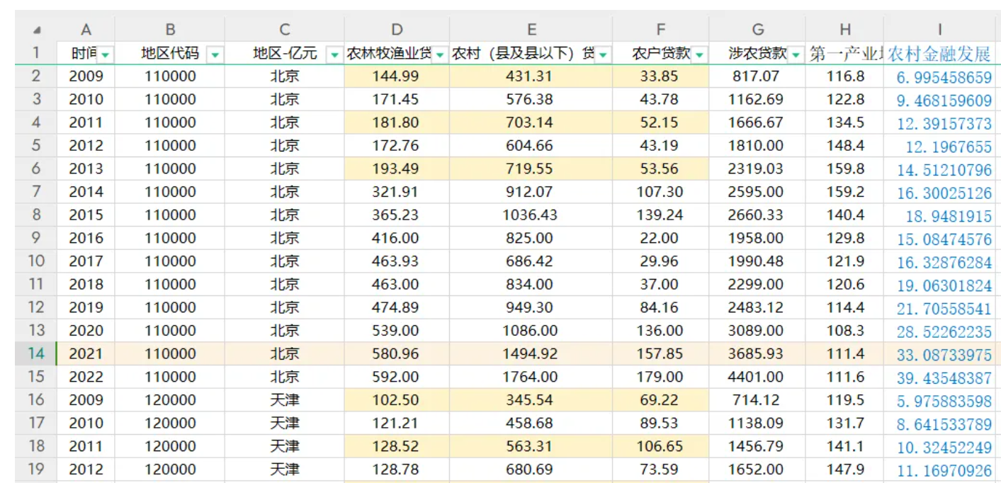 数据名称:2009-2022年农村金融发展水平省级面板数据