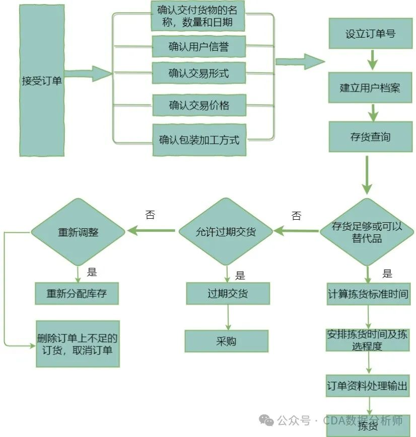 以快递行业为例,我们首先会接到客户的订单,然后快递员揽收,形成包裹表。包裹经过集包、上车、走干线、支线,途径多个网点,经历多次拆包和集包,最终到达派送网点,由快递员派送。我们需要了解这些流程,以便知道从哪个表中取数,以及如何追踪包裹的整个流程,包括派送时间和时效。