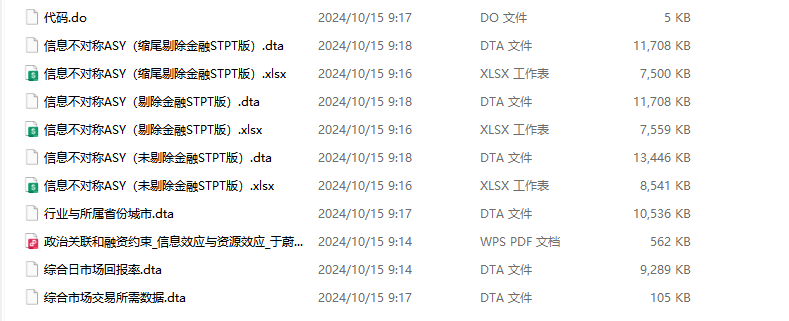 信息不对称ASY(未剔除金融STPT版).dta 信息不对称ASY(未剔除金融STPT版).xlsx 信息不对称ASY(剔除金融STPT版).dta 信息不对称ASY(剔除金融STPT版).xlsx 信息不对称ASY(缩尾剔除金融STPT版).dta 信息不对称ASY(缩尾剔除金融STPT版).xlsx
