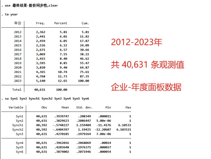 范围:2012 - 2023 年,共 40,631 条观测值,全部A股上市公司