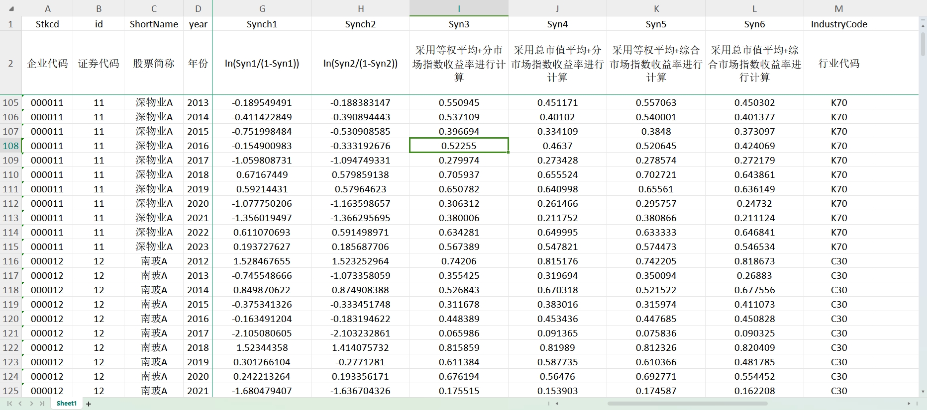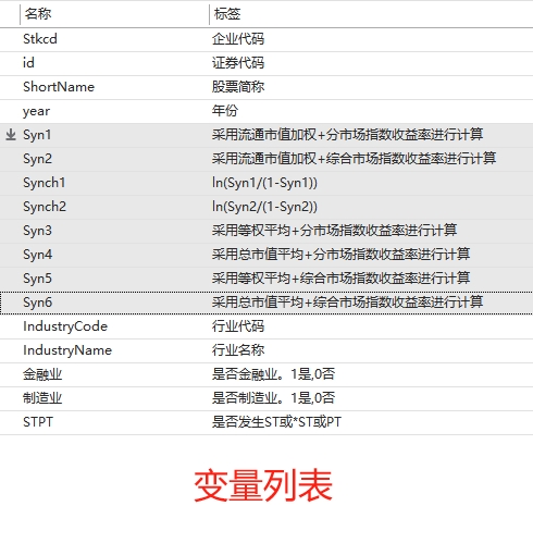 【推荐】1998-2022年 A股上市公司股价同步性指标SYN