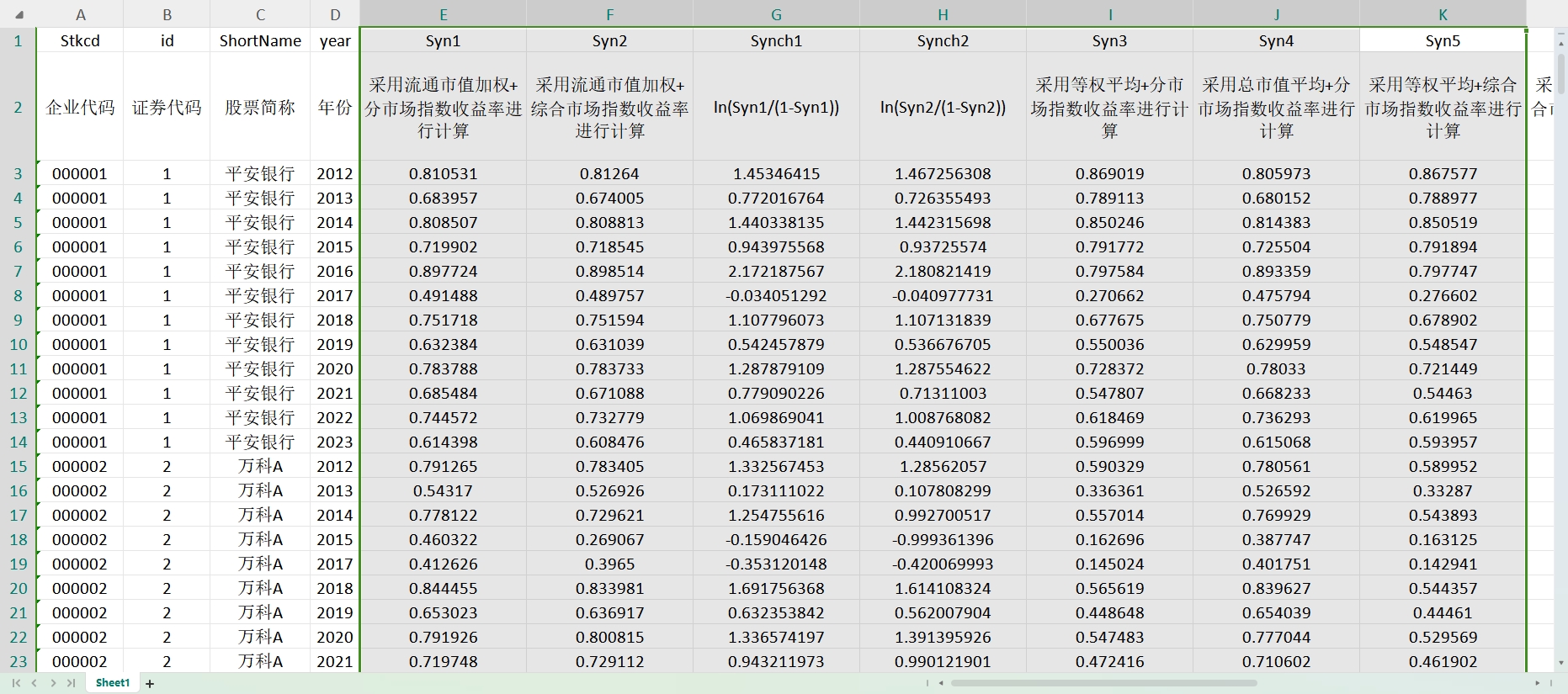 【股价同步性SYN】更新!2000-2023年股价同步性(股价信息含量)六种不同的计算结果