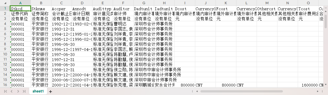 上市公司审计意见表文件1990-2023审计师境内境外审计事务所审计费用金额其他相关费用金额