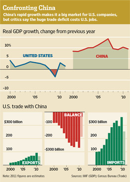 Mr. Romney, who has taken the hardest line on China among presidential candidates, says U.S. pressure is crucial to get China to change its ways. He says he would name China a currency "manipulator" for keeping its currency undervalued, and hobble Chinese imports by imposing compensatory tariffs. The Senate bill has similar provisions and is championed by lawmakers like Democrat Charles Schumer of New York.