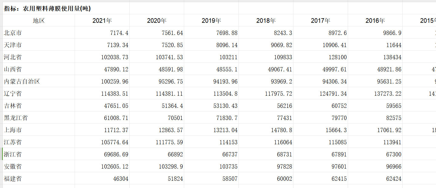 1997-2021年各省农用塑料薄膜使用量数据