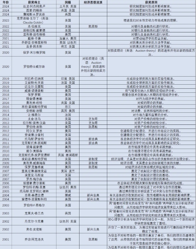 样例数据:历年诺贝尔经济学奖得主(1969-2024)