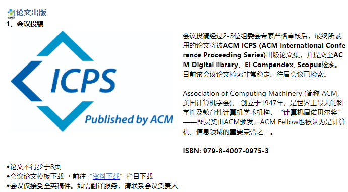 【ACM出版-稳定快速EI检索 | 往届均已完成EI, Scopus检索】