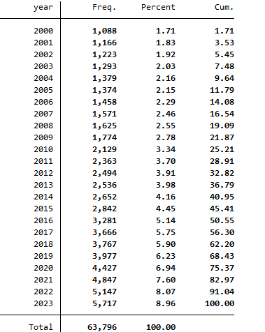 - 文件格式:Dta格式(使用Stata打开)、Xlsx格式(使用Excel打开)