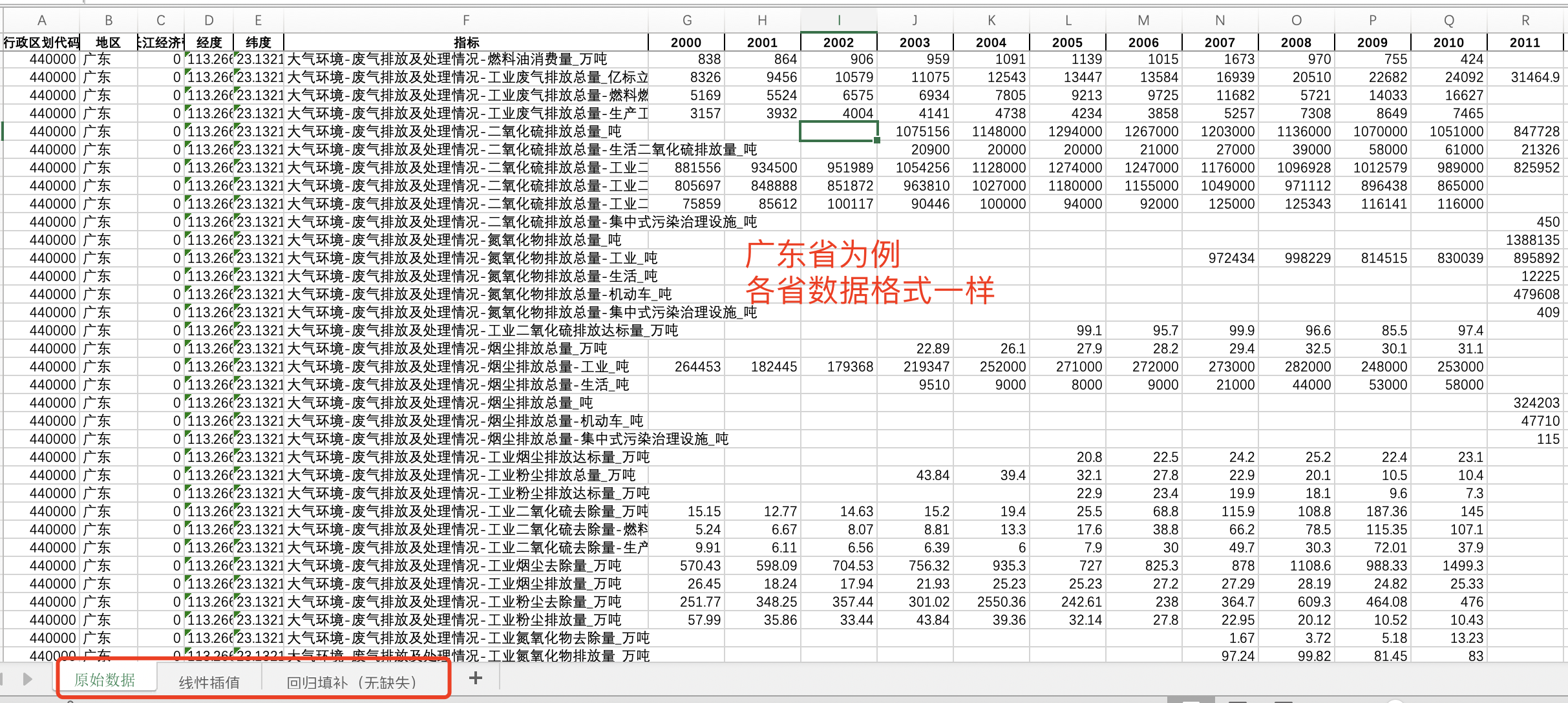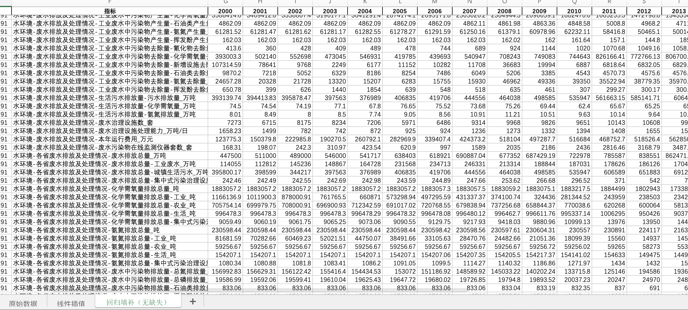 数据格式:Excel数据文件包含原始数据(由于多年度指标不同存在缺失值)、线性插值、ARIMA填补(无缺失)三个版本,提供您参考使用。其中,ARIMA填补无缺失值。
