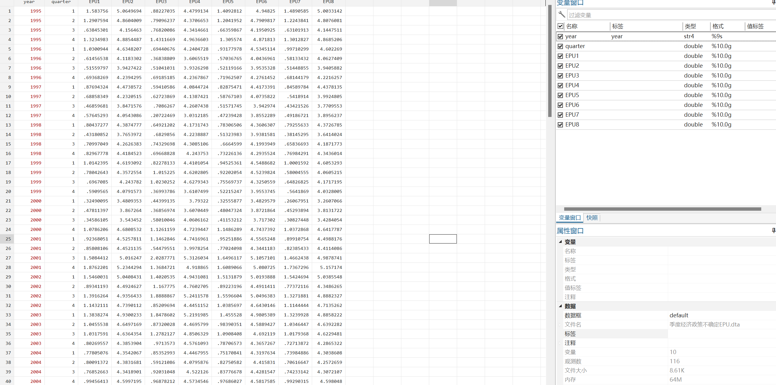 - EPU8几何平均法计算季度层面的经济政策不确定性取自然对数