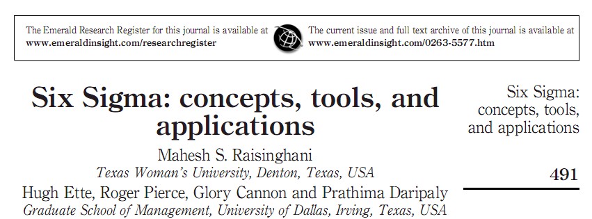 Raisinghani, M. S. et al. Six sigma: concepts, tools, and applications[J]. Industrial management + Data systems. 2005,105,3/4.