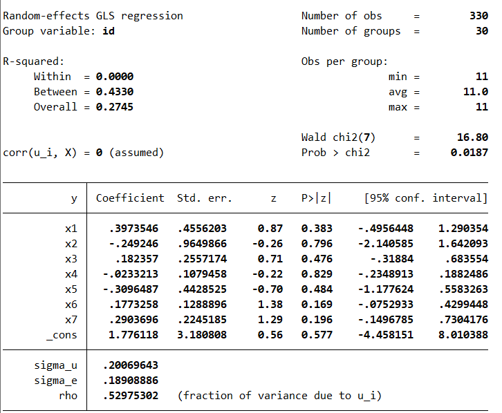 小弟初学,跟着指令做出来的结果看不懂,只能看见每一个变量和y的关系,请问哪一个是总体关系,或者需要什么指令才能看出y与七个变量的总体关系,求问
