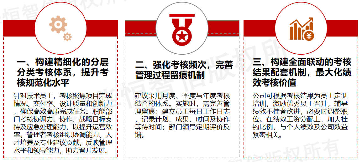 华恒智信建议增加考核次数,并实施管理过程留痕。建议采用月度、季度与年度考核结合的体系。实施时,需完善管理留痕:建立员工每日工作日志,记录计划、成果、时间及协作等待时间;部门领导定期评价反馈。