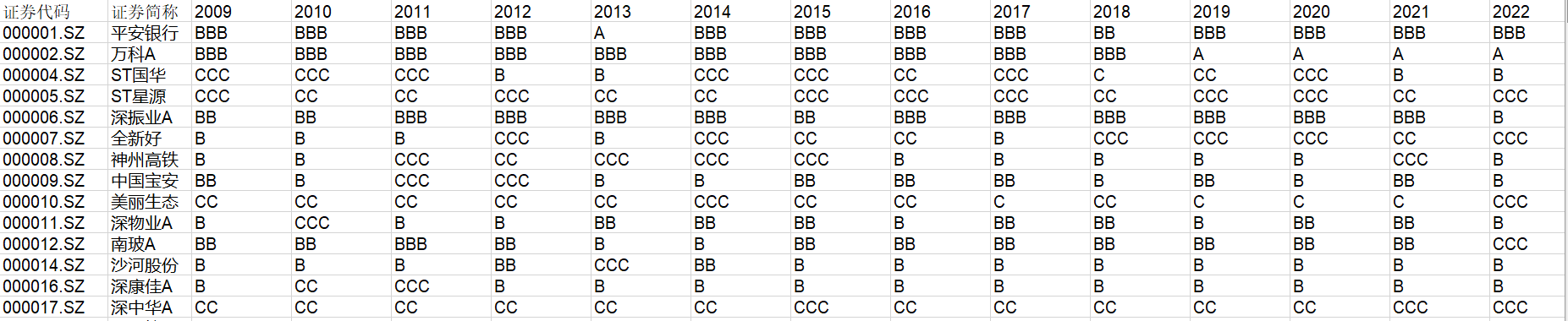 华证ESG评级数据具有贴近中国市场、覆盖范围广、时效性高等特点,故可华证指数对沪深300指数成分股的ESG及各维度评级作为衡量企业ESG表现的标准。沪深300指数成分股的ESG表现分为九个等级,从优至次分别为AAA、AA、A、BBB、BB、B、CCC、CC和C,将C至AAA九个等级依次赋值为1至9分。