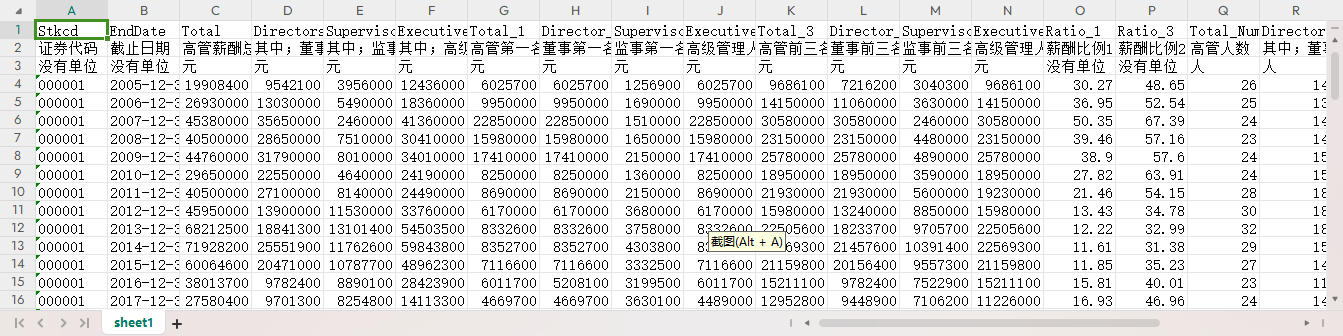 上市公司高管薪酬比例表(年)2005-2023高管薪酬总额高管第一名薪酬董事第一名薪酬监事第一名薪酬高级管理人员第一名薪酬高管前三名薪酬总额董事前三名薪酬总额监事前三名薪酬总额高级管理人员前三名薪酬总额薪酬比例