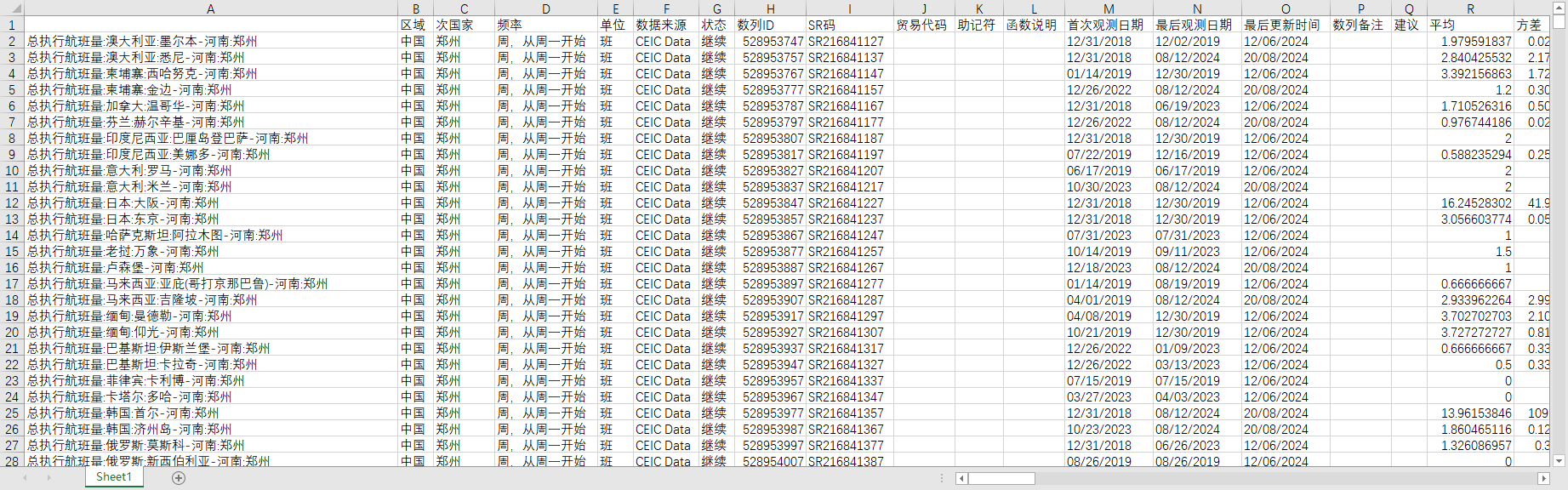 数据范围:全国各地机场、航线、航司飞常准航班统计数据