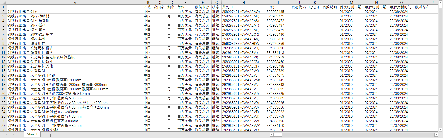进出口国际贸易全国进口出口钢材钢铁产品商品金额数量2003-20407月度数据