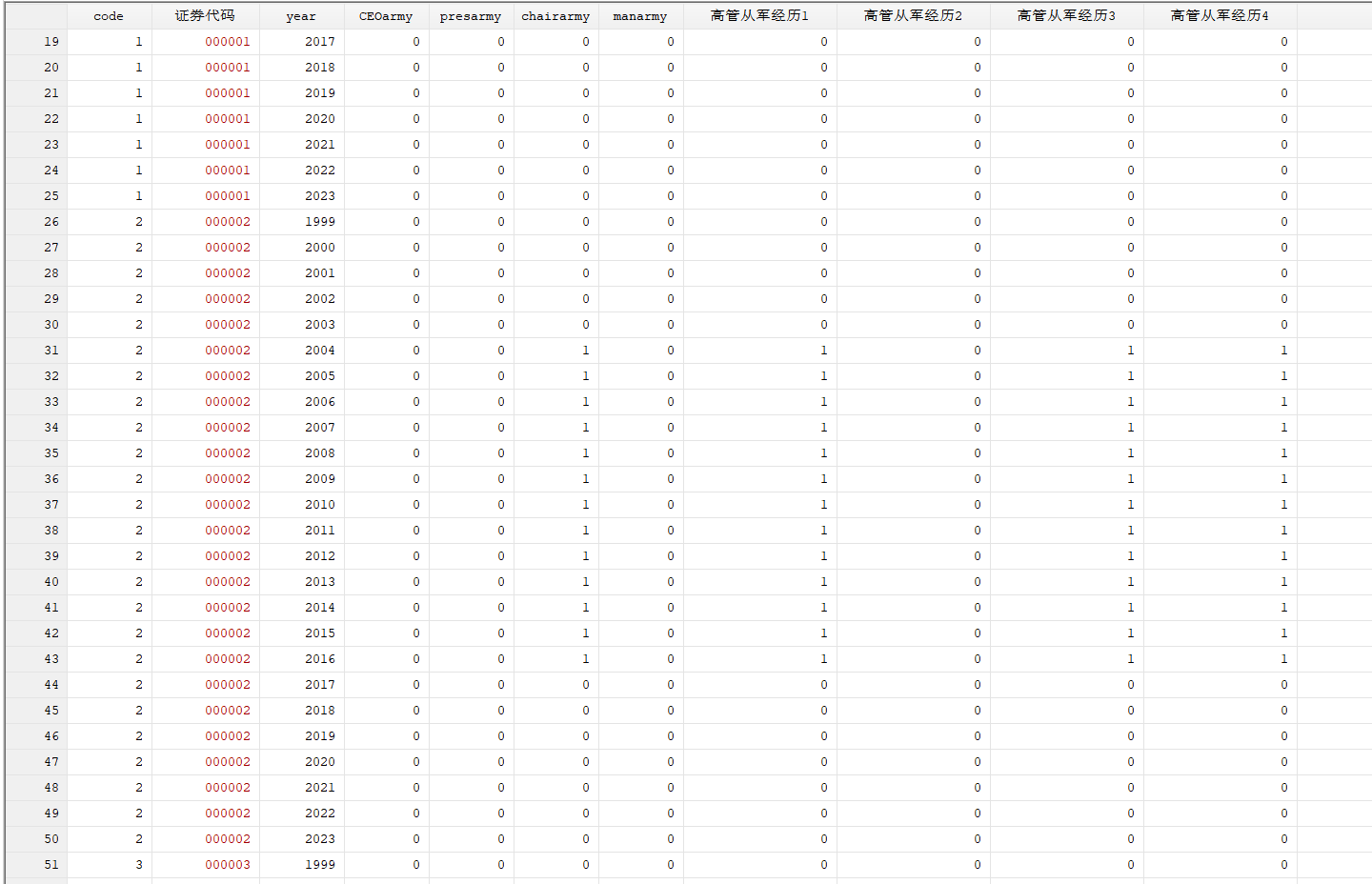 1996-2023年高管从军经历数据(Stata计算),CEO从军经历/总经理/董事长从军经历