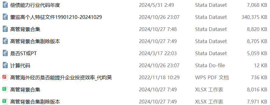 版本2:在做了上述剔除处理的基础之上,同时剔除了金融行业的样本和当年年末被ST、*ST或PT的上市公司,文件名为“高管背景合集剔除版本”